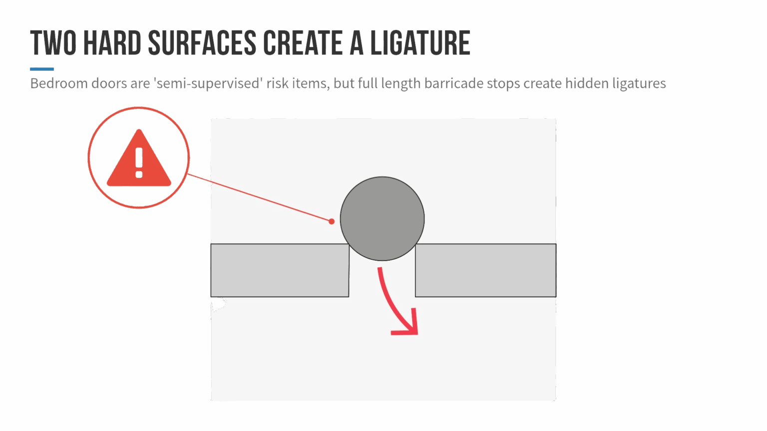 90% of these hangings involve a low-level ligature point (anything below head height), often a door handle, hinge, or frame. It’s not just the top of the door that poses risk; it’s every part of it. That’s why having a system that protects across the entire door is so crucial.