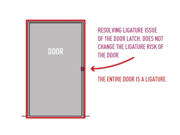 Two hard surfaces meeting, for example frame and leaf, can create a ligature point. But removing the door entirely isn’t an option. Doors are needed for fire safety, soundproofing, and privacy.