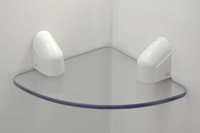 Engineered for demanding environments, our shatter-resistant corner shelf is lightweight, reducing risks for users and staff. It features a unique downward-load release mechanism for enhanced safety and tested fire resistance.