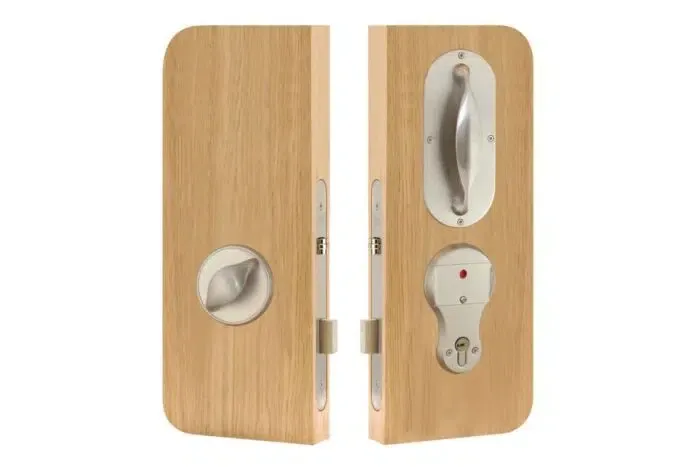 Service users can make their room private with the turn/pull on the lockset. The indicator is linked to the turn/pull, so staff know if a service user has locked their door for privacy.